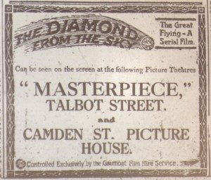 Dublin audiences could first experience The Diamond from the Sky serial in written form before seeing it on screen at the Masterpiece and Camden. Dublin Evening Mail 28 Sep. 1916: 8.