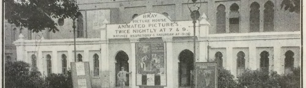 From his article we learn that Power was a barber working from a shop at 1 Novara Avenue in Bray, which became the production office during shooting, with barrels for processing film in its yard; that Tobin’s blind brother Matthew operated the camera at times when all that this required was for him to turn the handle moving the film through the camera at a steady pace; that Power’s first film was the one-reel comedy called Willy Scouts While Jessie Pouts; that Power collected Kitty, an experienced amateur actor, from her tobacconist’s job when the weather was good for filming; and that he died on 20 June 1920 from injuries sustained while shooting a racing scene at Leopardstown race course for An Irish Vendetta, his follow up to Rosaleen Dhu. O’Fearail is less interested in the exhibition of the film, merely quoting Bray native Christy Brien’s claim that it was shown at Mac’s in Bray at an unspecified date and speculating that it was screened at other cinemas in Wicklow and probably beyond.
