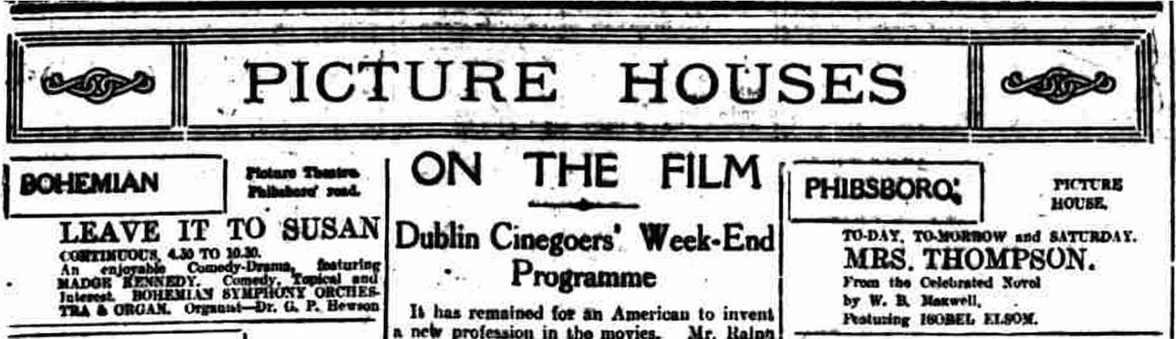 “On the Film.” Freeman’s Journal/Evening Telegraph 29 Nov. 1920: 8; 16 Dec. 1920: 6; 30 Dec. 1920: 2.