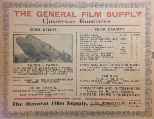 To address their loss of income, cinema proprietors negotiated with their employees when their representative organization the Dublin and South of Ireland Cinematograph Exhibitors Association entered talks with the Musician Union and Irish Transport and General Workers Union (ITGWU). The musicians – “and they include many men of considerable note in their profession” – agreed to a 21-hour week and to give two free matinees a week (“Irish Exhibitors to Carry On”). After the ITGWU negotiation, JAP reported that the other “employees have agreed to accept 15 per cent. less as long as the present Curfew hours obtain in Dublin” (“Trade in Ireland”). “Did anybody say anything about ‘A Merry Christmas?’” JAP asked rhetorically.