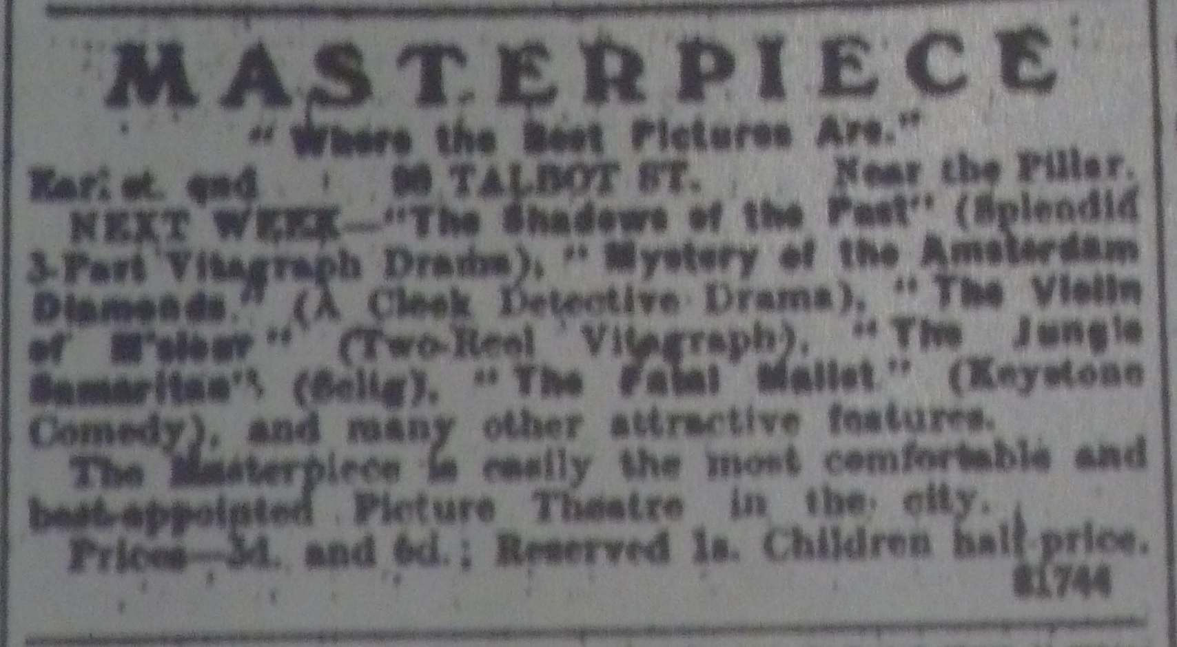 “Masterpiece Theatre.” Evening Telegraph 17 Oct. 1914: 6.