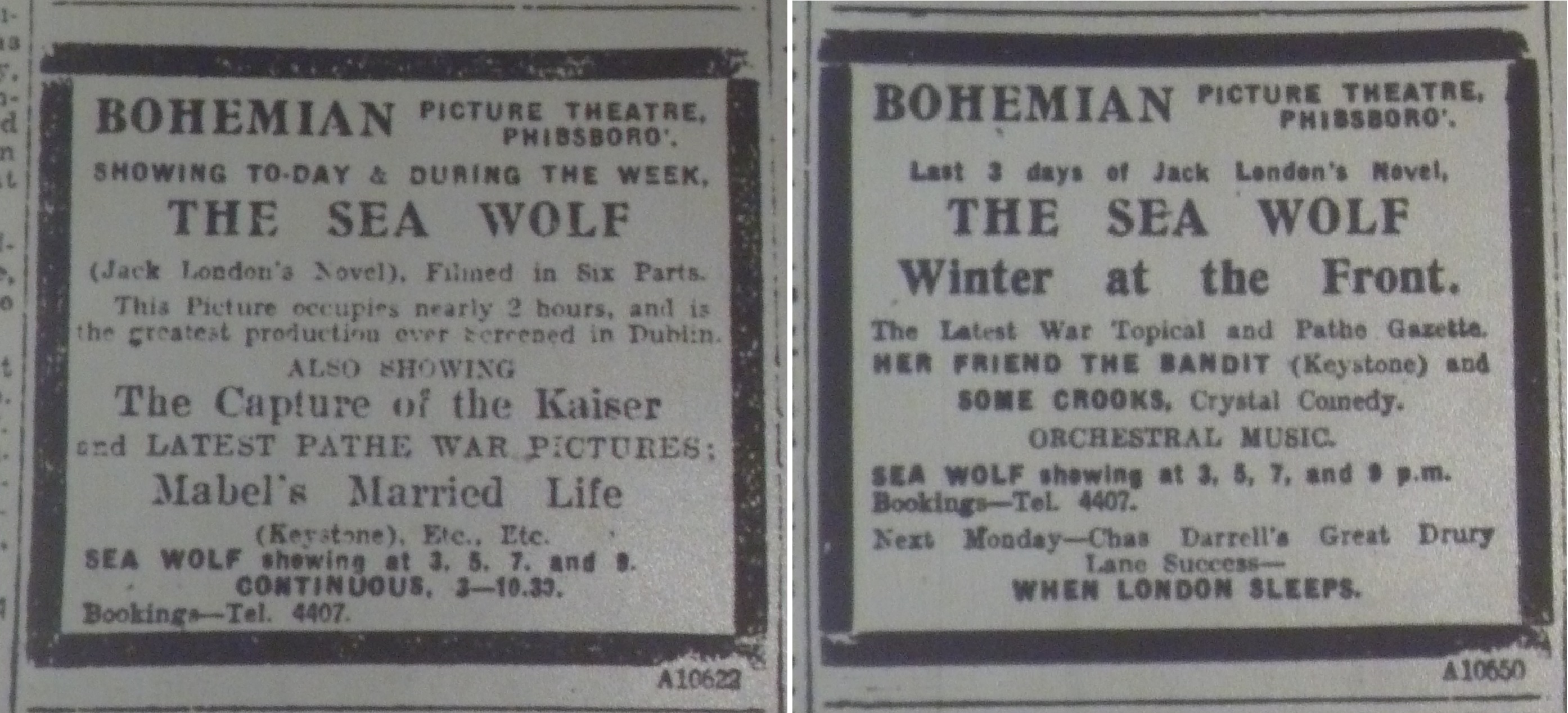 Using labour leader Jim Larkin’s name as an attention grabber, George Butler & Sons offered to act as Irish agents for British film companies; Bioscope 28 May 1914: 976.