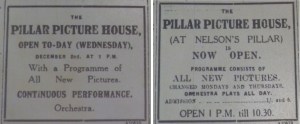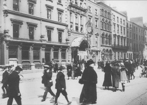 The cinemas had certainly been lucky. “Some special god seemed to have been keeping a friendly eye on them,” this writer thought. But even if they didn’t feature on the lists of destroyed buildings, the cinemas weren’t entirely unscathed. The earliest surviving photograph of the Pillar shows it on the busy streetscape of Upper O’Connell Street just after the fighting stopped, with many pedestrians passing its bullet-damaged canopy, even if its façade seems somehow to have fared better than the buildings around it. “Considering its exposed appearance,” an Evening Herald reporter noted, “the Pillar Picture House escaped fairly well. Only a few bullets penetrated the big glass doors, but in the offices overhead a machine-gun had played for some time and did damage to the interior” (“Awe-Stricken Crowd”). It may be for that internal damage that the Pillar applied for compensation to the city for the figure of £750 (“Dublin’s Bill”).