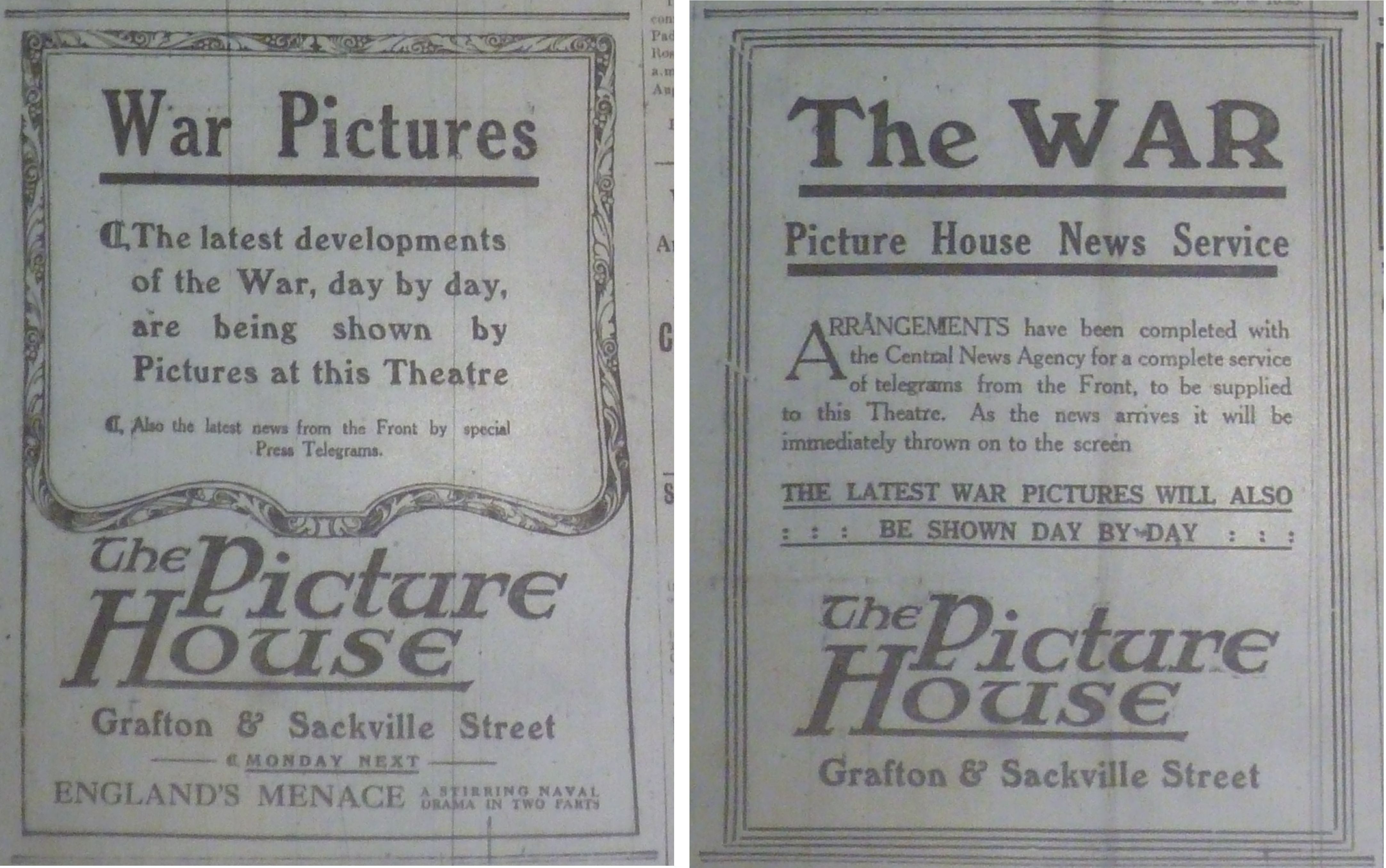 “Picture Matinees at the Theatre Royal.” Daily Express 3 Nov. 1914: 8.