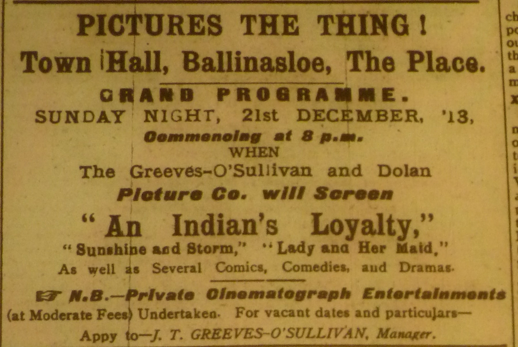“Local Topics: Picture and Variety Co. For Ballinasloe.” East Galway Democrat 15 Nov. 1913: 5.