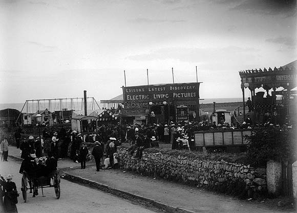 John Toft’s fairground cinematograph show at Tramore, Co Waterford, in 1901. From National Library of Ireland’s catalogue.